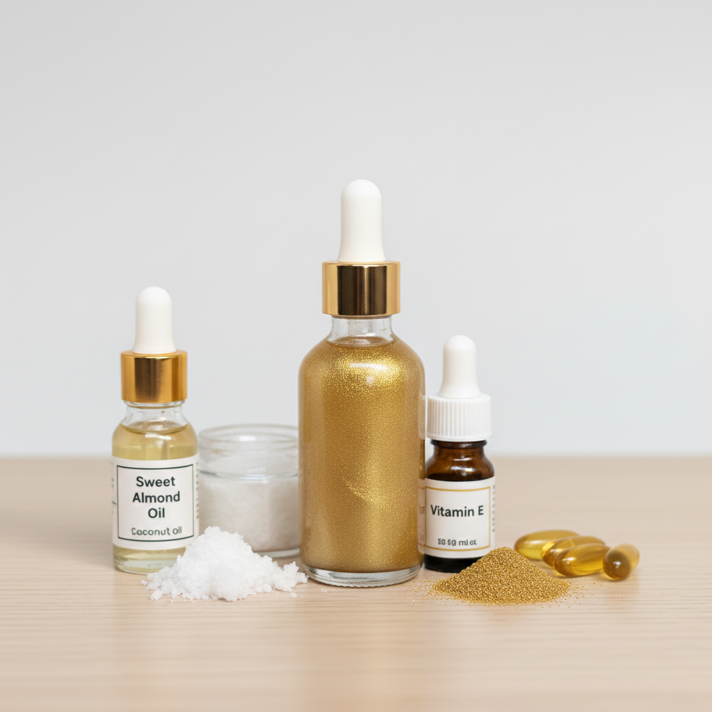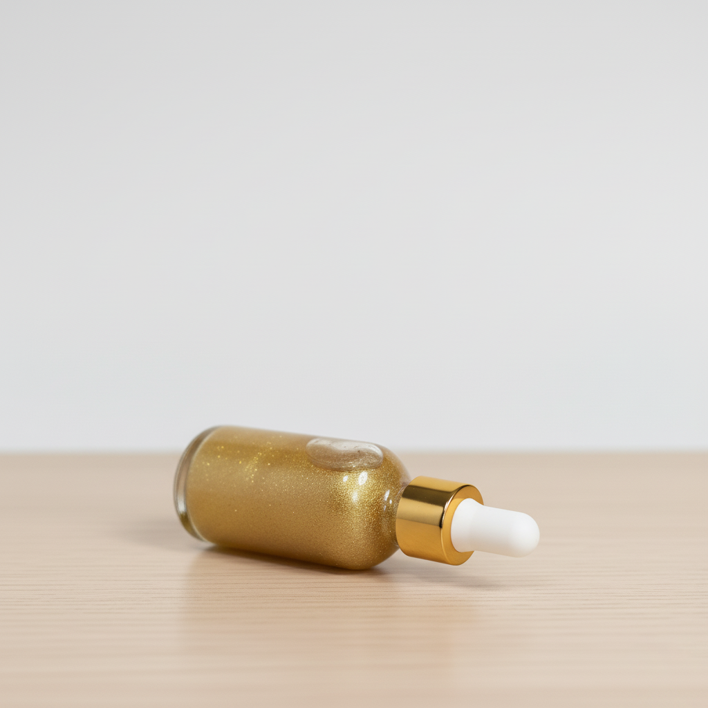 - Safe synthetic ingredients, it deeply hydrates while leaving a luminous golden sheen on your skin. Lightweight and fast-absorbing, this shimmer oil enhances your natural radiance — giving you a silky, sunlit glow that feels as indulgent as it looks.