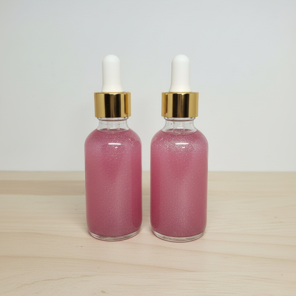 Glow like never before with our Pink Shimmer Body Oil (Miah) — a luxurious, lightweight blend designed to leave your skin radiant and silky-smooth. Infused with natural oils and a hint of pink shimmer, this body oil nourishes deeply while giving your skin a soft, luminous glow that catches the light beautifully