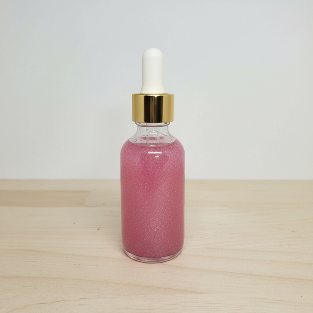 • safe synthetic ingredients, it deeply hydrates while highlighting your natural beauty. Infused with delicate shimmer pigments, this lightweight oil absorbs quickly — leaving your skin silky, radiant, and illuminated with a subtle pink glow.