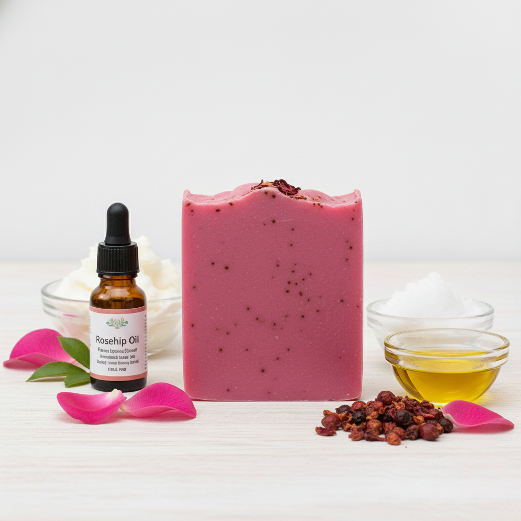- Indulge in the soft elegance of our Rose Soap — delicately handcrafted with natural botanicals, moisturizing oils.