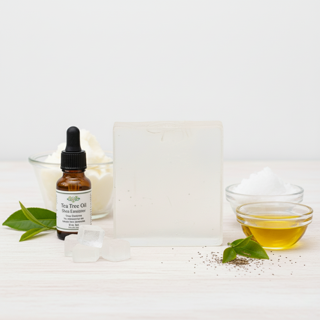 Refreshing antibacterial bar infused with tea tree to cleanse and clarify.